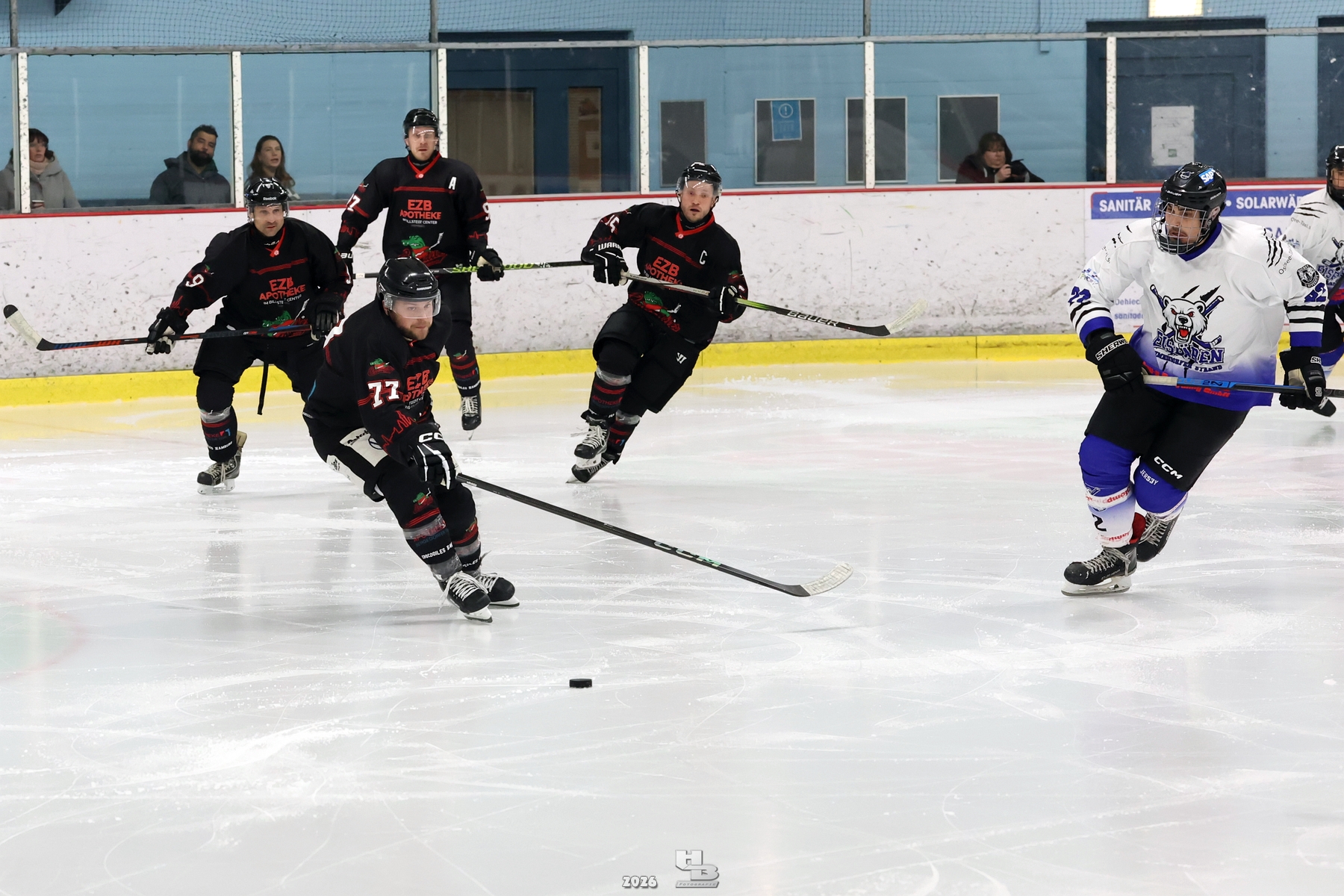 Kurz darauf konnten auch die Eisbären erstmals treffen, doch die Antwort ließ nicht lange auf sich warten: Rino Schroeder stellte mit Unterstützung von Viktor Rausch und Rene Wegner den alten Abstand wieder her – 4:1. Ein torreiches zweites Drittel also.