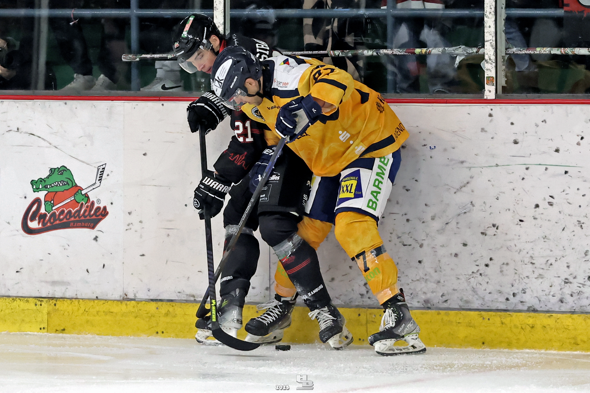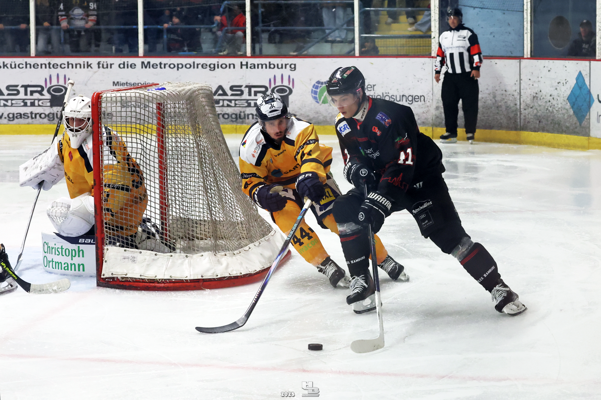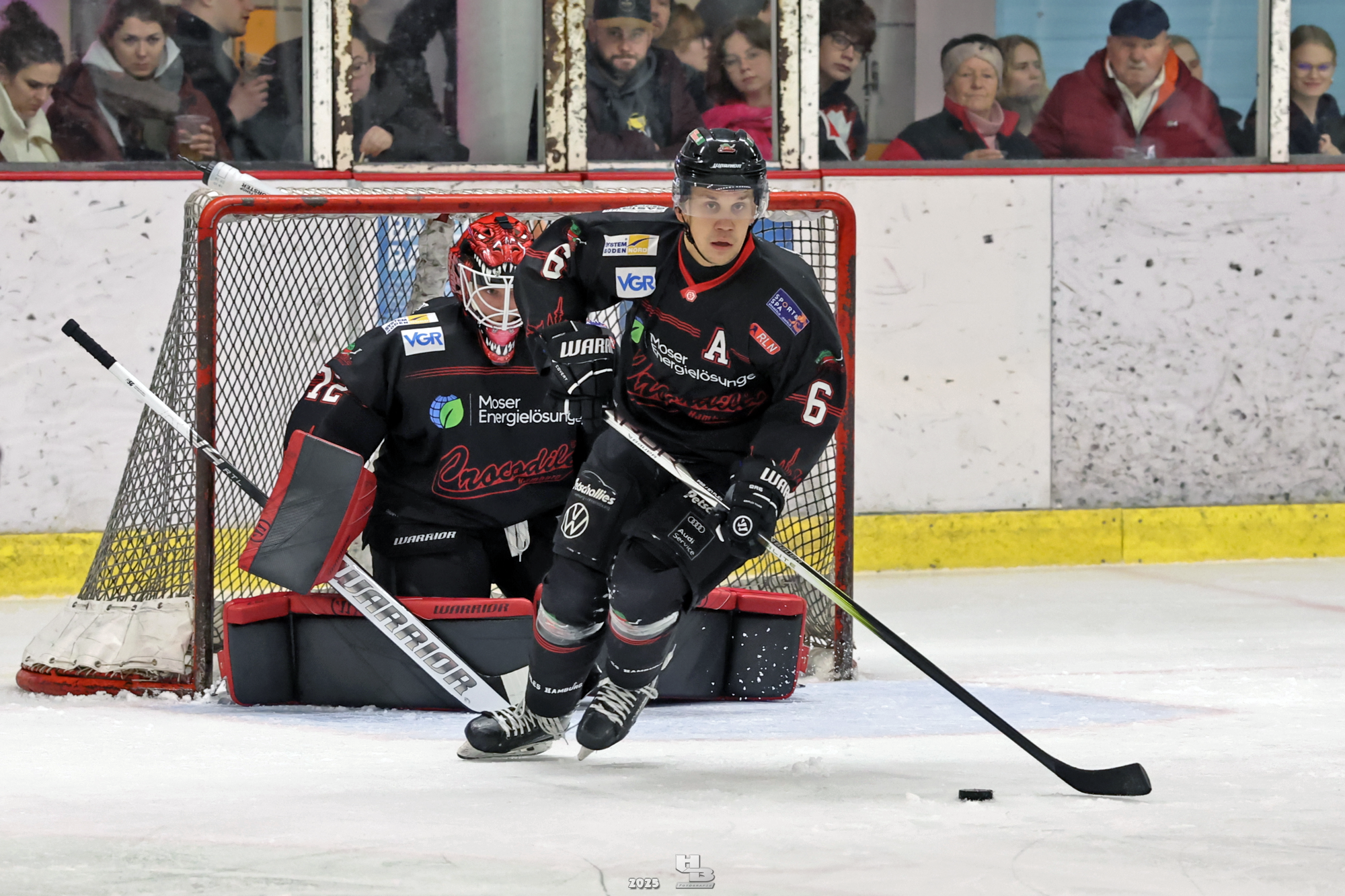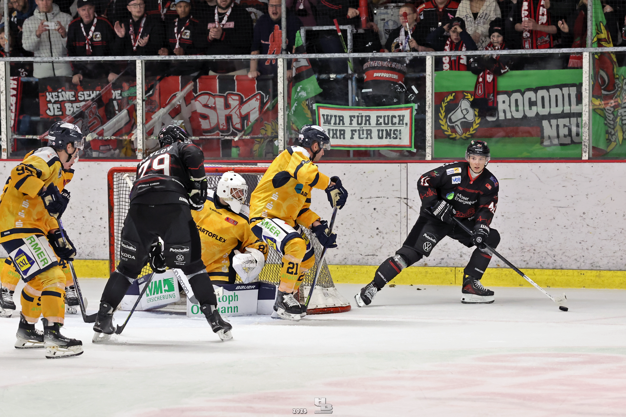 Die Crocodiles machten früh Druck auf das Gehäuse der Adendorfer. Man merkte, dass sie nach dem Sieg gegen die Falken weiter Vollgas geben wollten. So kam es, dass Leo Prüßner in der 4. Minute auf Traumvorlage von Markus Lepistö und Tobias Bruns das 1:0 erzielte. Die Crocodiles erhöhten weiter den Druck. In der 17. Minute musste Domantas Cypas für zwei Minuten auf die Strafbank. Das folgende Powerplay blieb ohne Treffer, sodass es mit der knappen Führung in die erste Pause ging.
