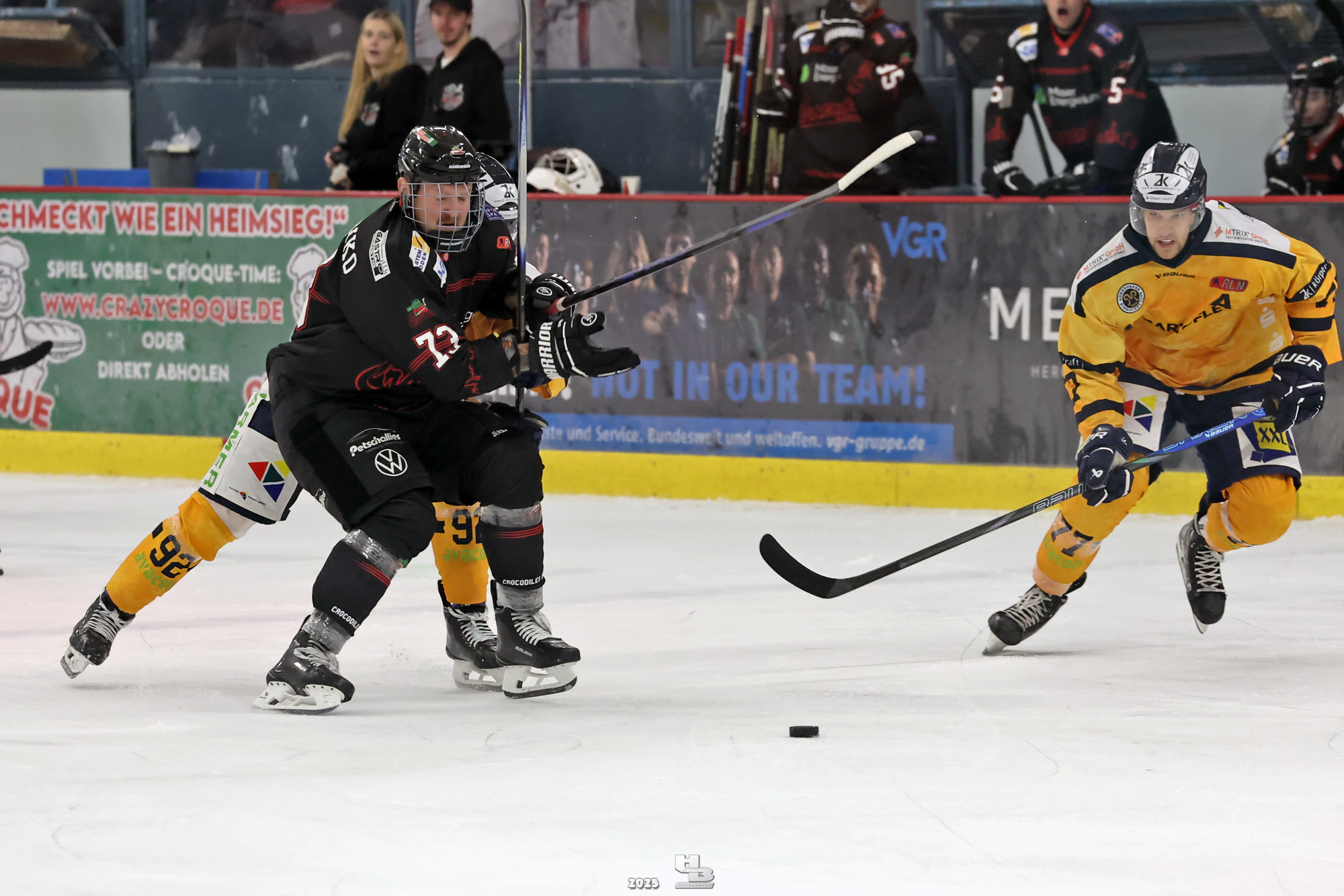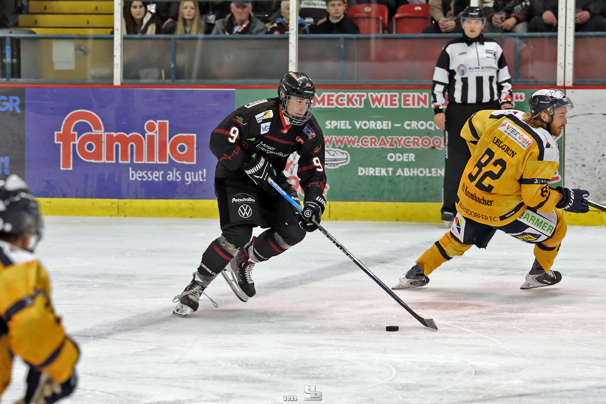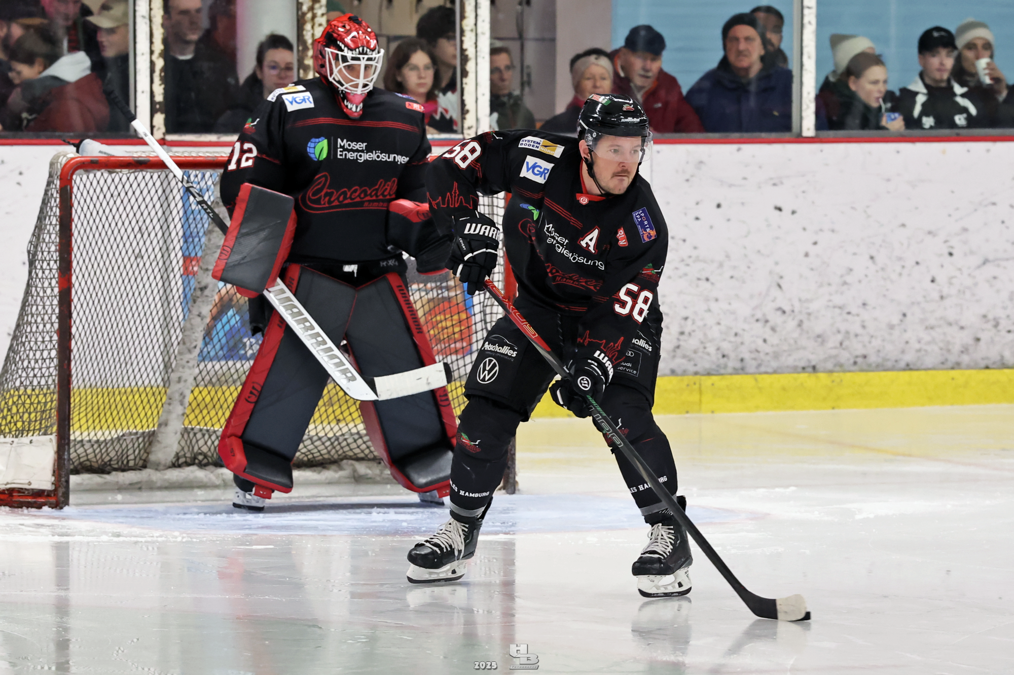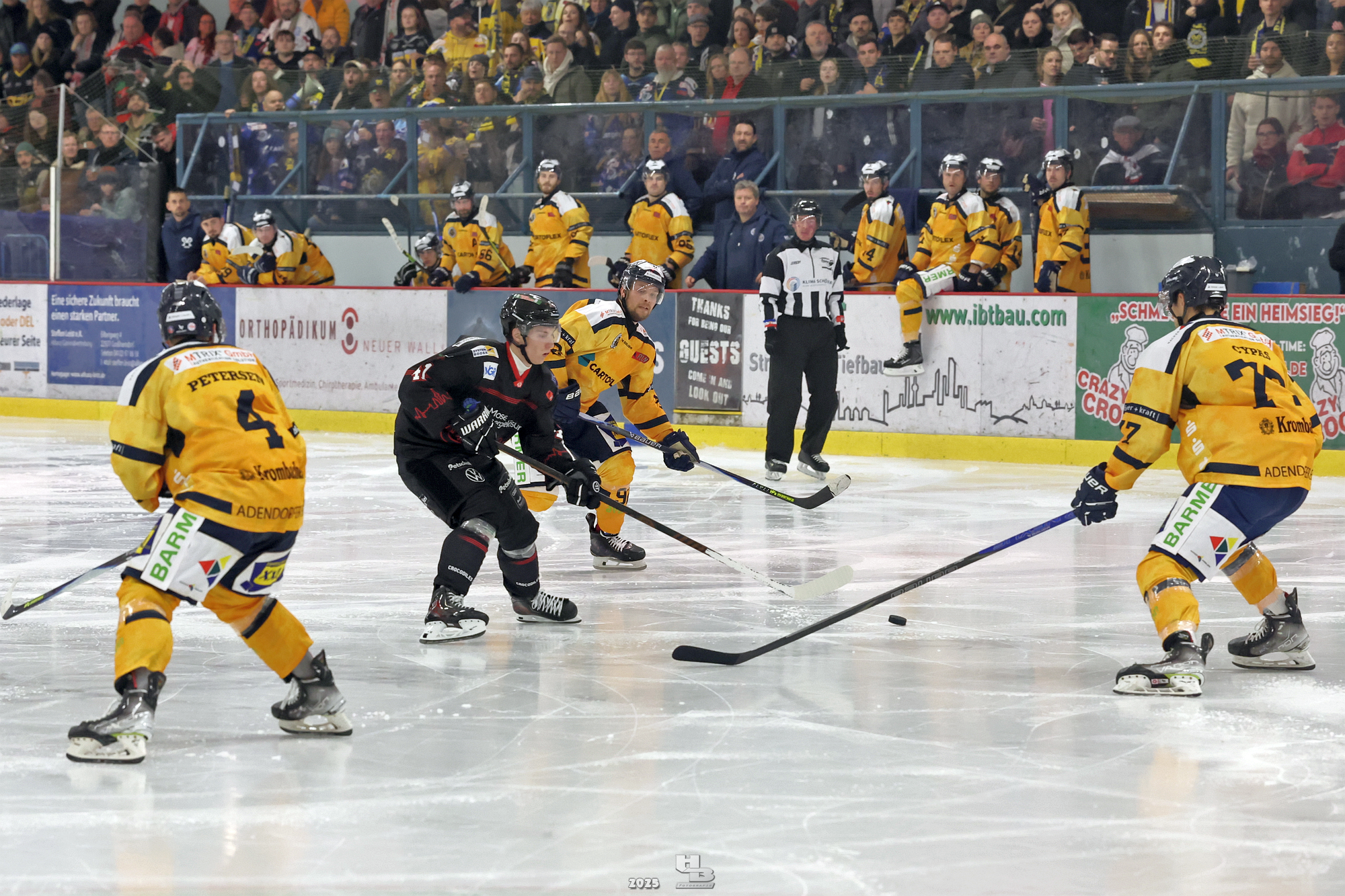 Nach der Pause hielten die Crocodiles das Tempo hoch, sodass Lasse Spreckelsen in der 24. Minute auf Vorlage von Maksym Andriienko und Oskar Siradze zum 2:0 erhöhen konnte. Dann ließen die Crocodiles das Tempo nach, sodass die Adendorfer einen guten Konter starten und durch Andre Gerartz auf 2:1 verkürzen konnten. Von da an kamen die Adendorfer nach und nach dem Tor immer näher. Die Crocodiles hatten noch drei Mal die Chance, im Powerplay ein Tor zu erzielen, doch jedes Mal scheiterten sie am starken David Kovacs. Mit der knappen 2:1-Führung ging es in die zweite Pause des Abends.