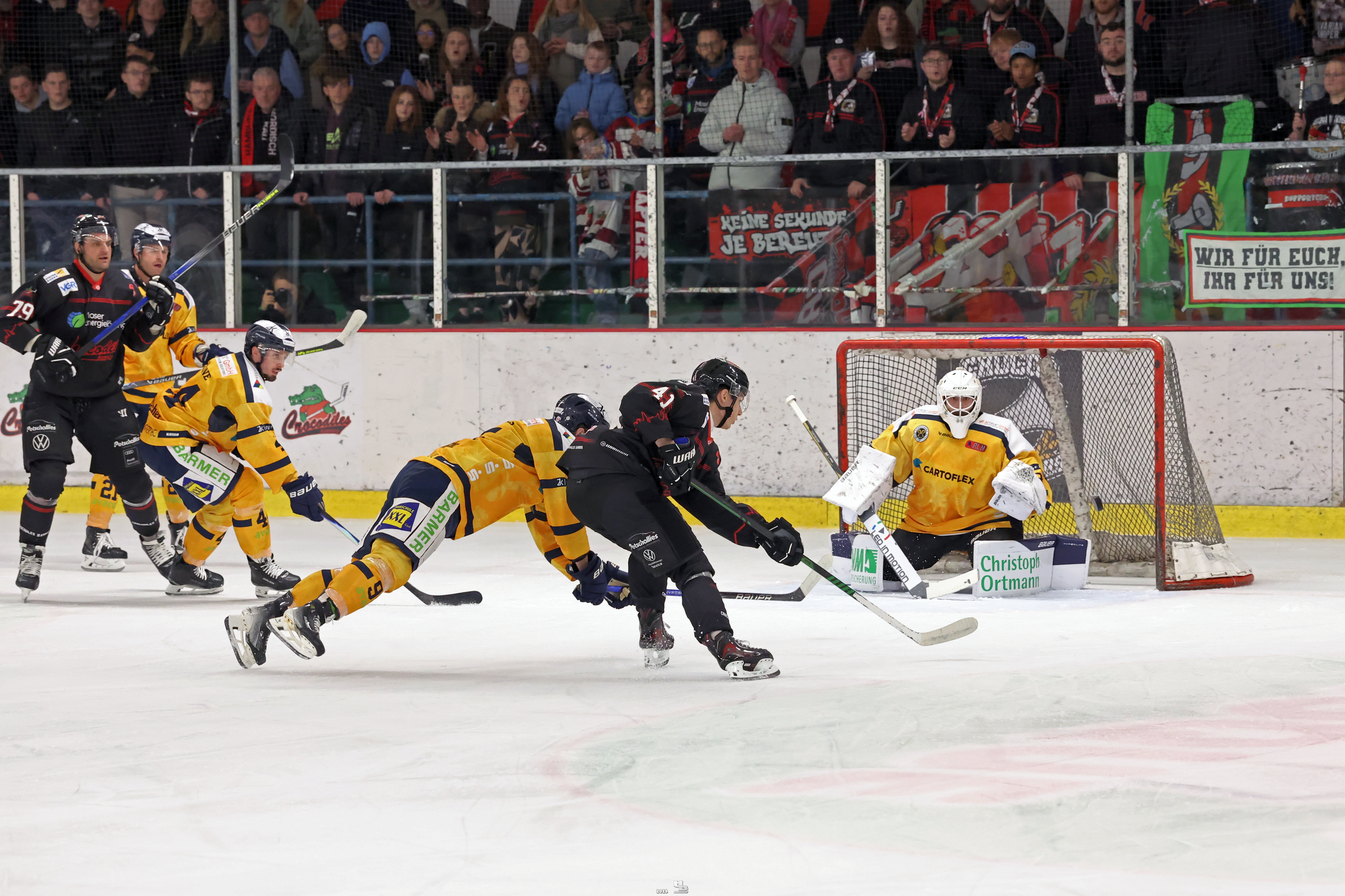 Die Overtime sollte nun also den Sieger ermitteln. Mit jeweils drei Feldspielern und einem Torwart ging es noch einmal für fünf Minuten aufs Eis. Beide Mannschaften wollten den Extrapunkt für sich beanspruchen, sodass es schnell hin und her ging. Kurz vor Ende der Overtime war es Kristian Kragh, der den Puck im Tor der Crocodiles versenkte. Adendorf geht damit als Sieger vom Eis und nimmt den zweiten Punkt mit.