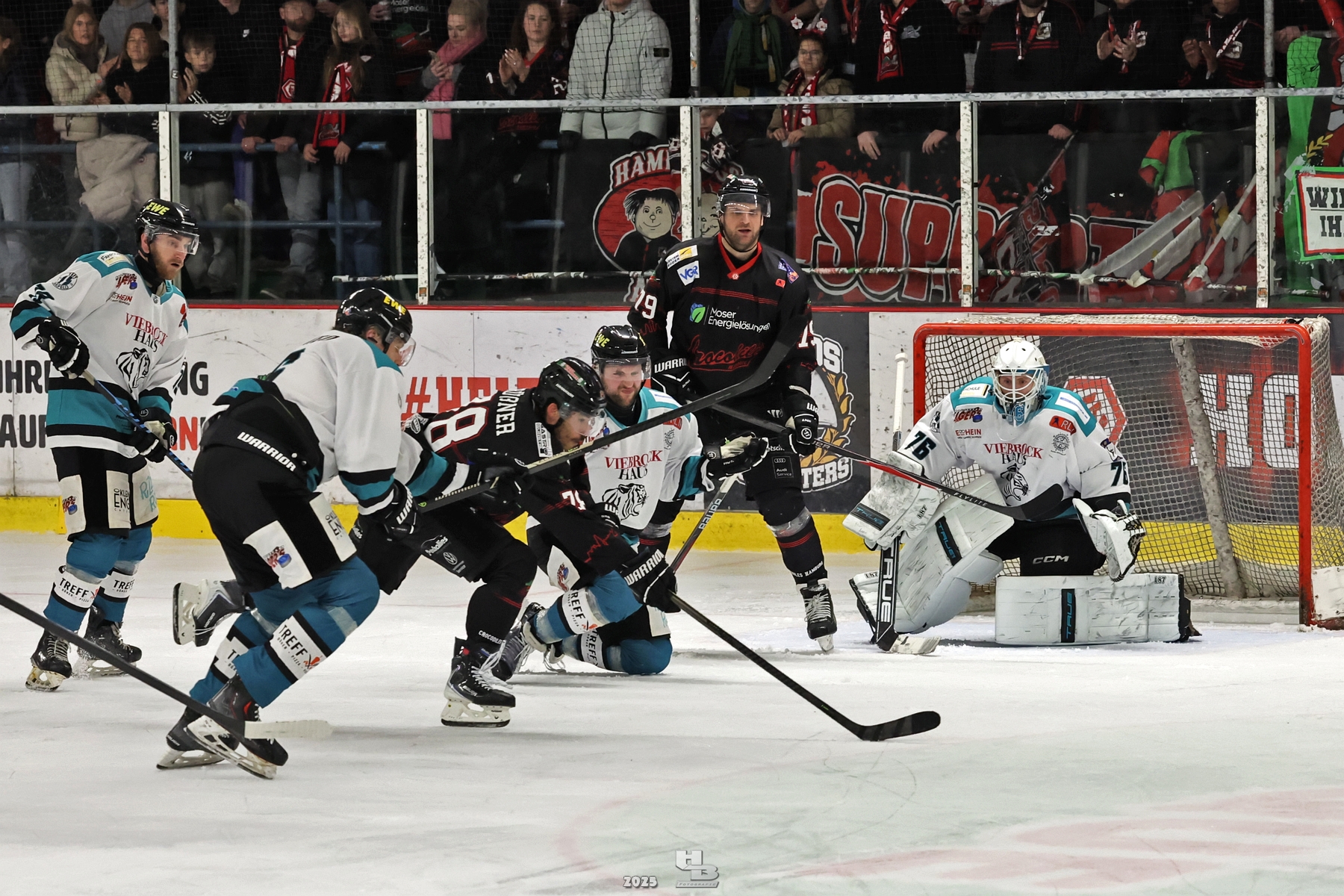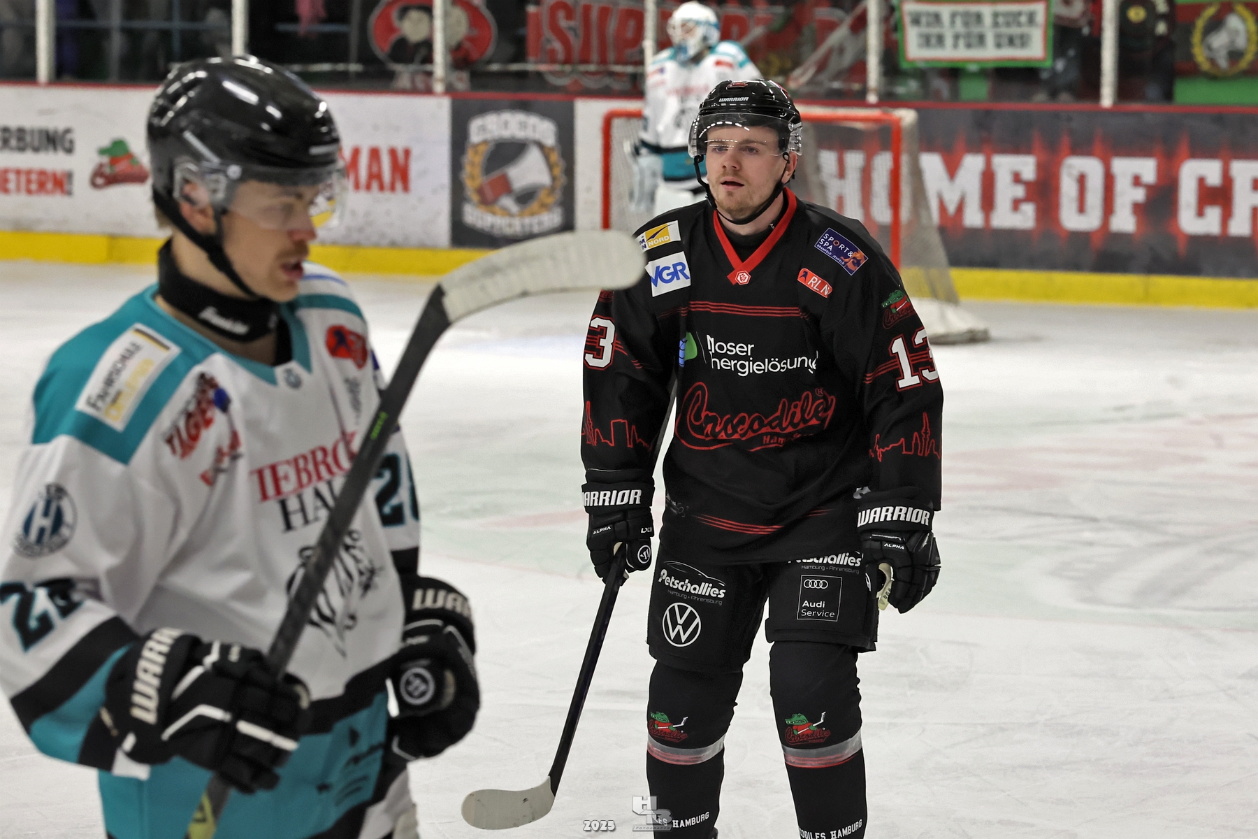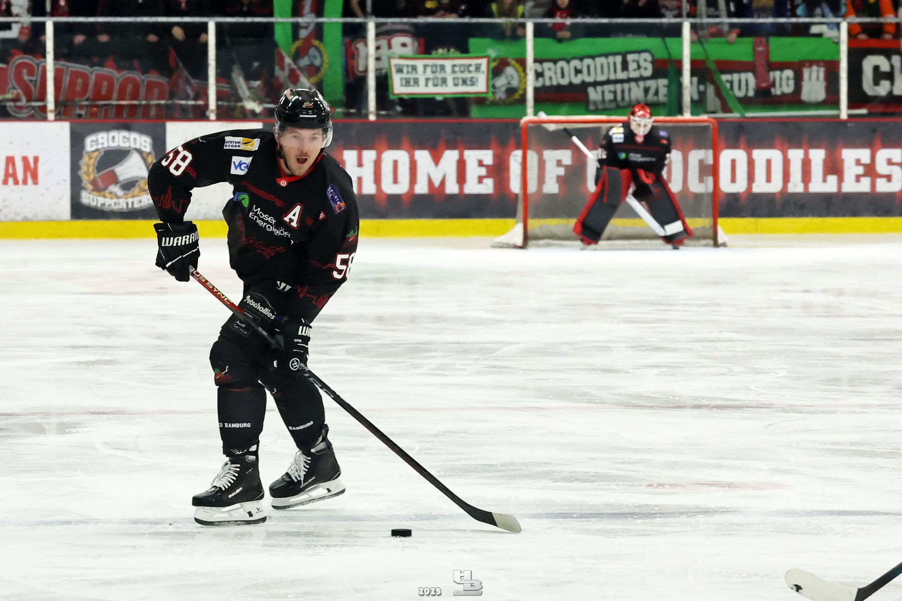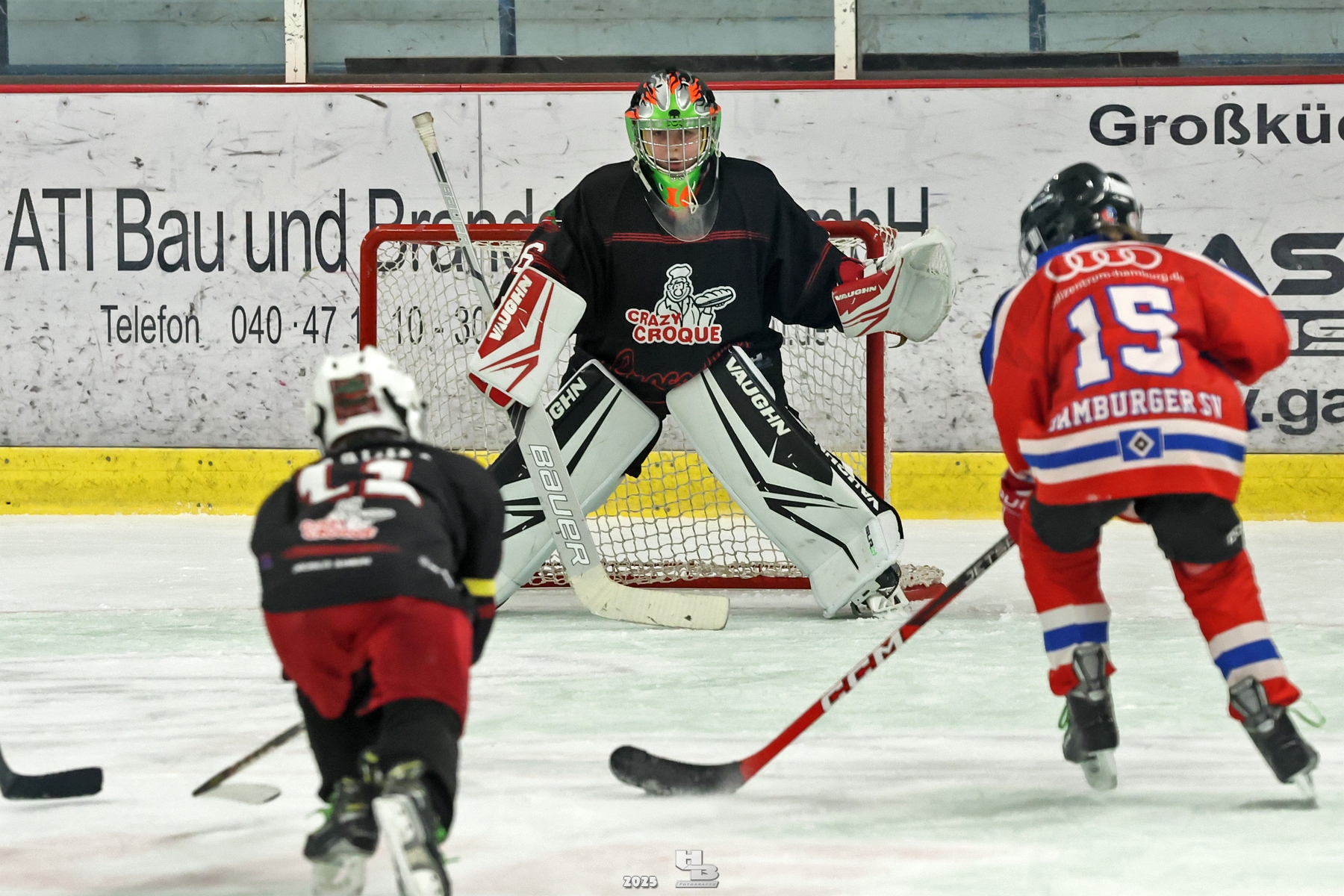 Im Schlussdrittel blieb das Spiel weiter temporeich. Die Crocodiles nutzten ihre Chancen konsequent: Ivan Savchenko erhöhte auf 3:1 und sorgte für etwas Ruhe. In der Schlussphase setzte der HSV alles auf eine Karte, nahm den Torhüter vom Eis – doch erneut war es Filip Kriz, der den Puck ins leere Tor beförderte und mit seinem zweiten Treffer des Abends den 4:1-Endstand besiegelte.