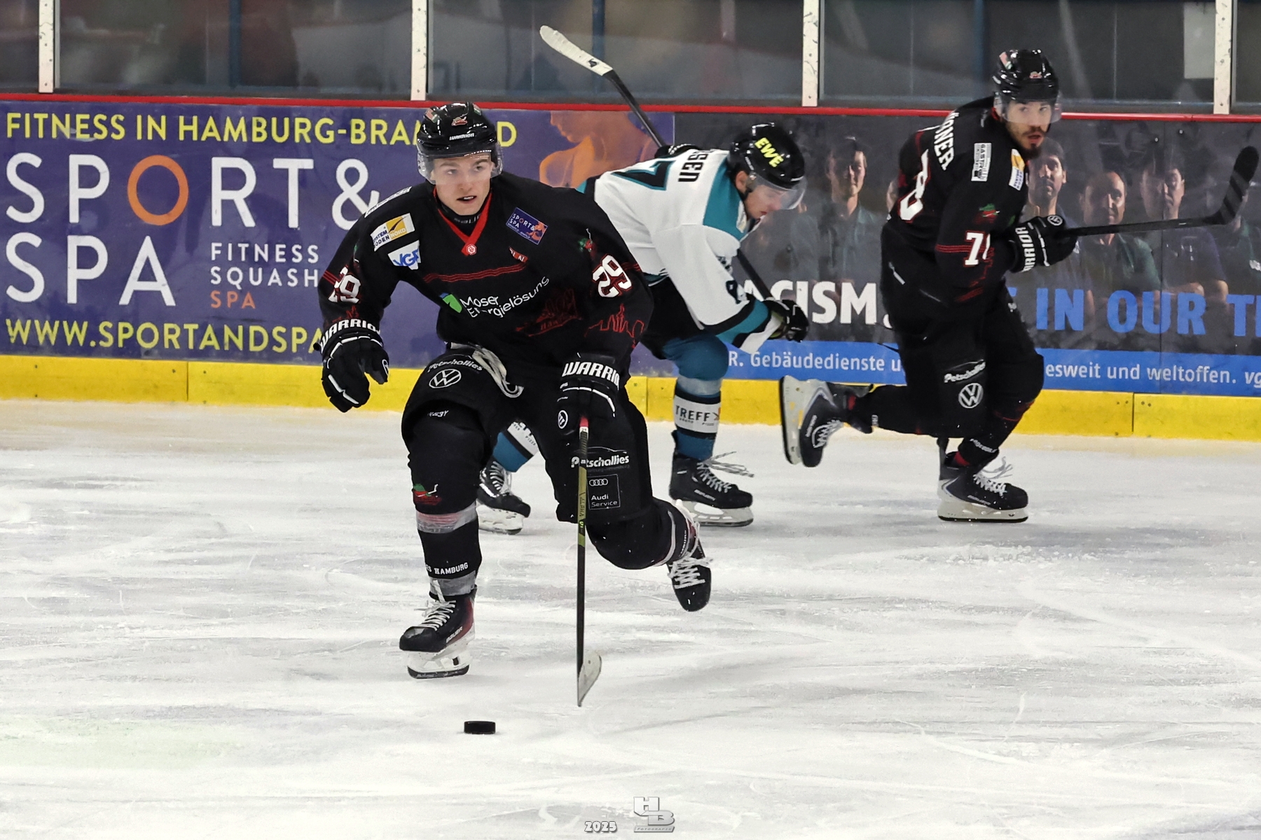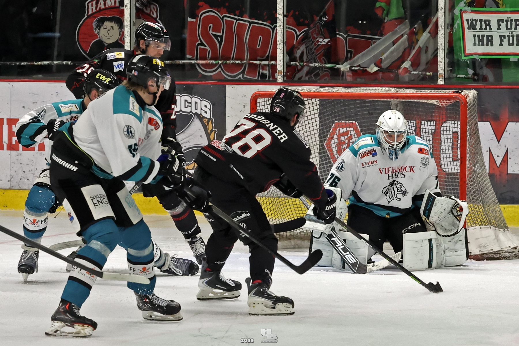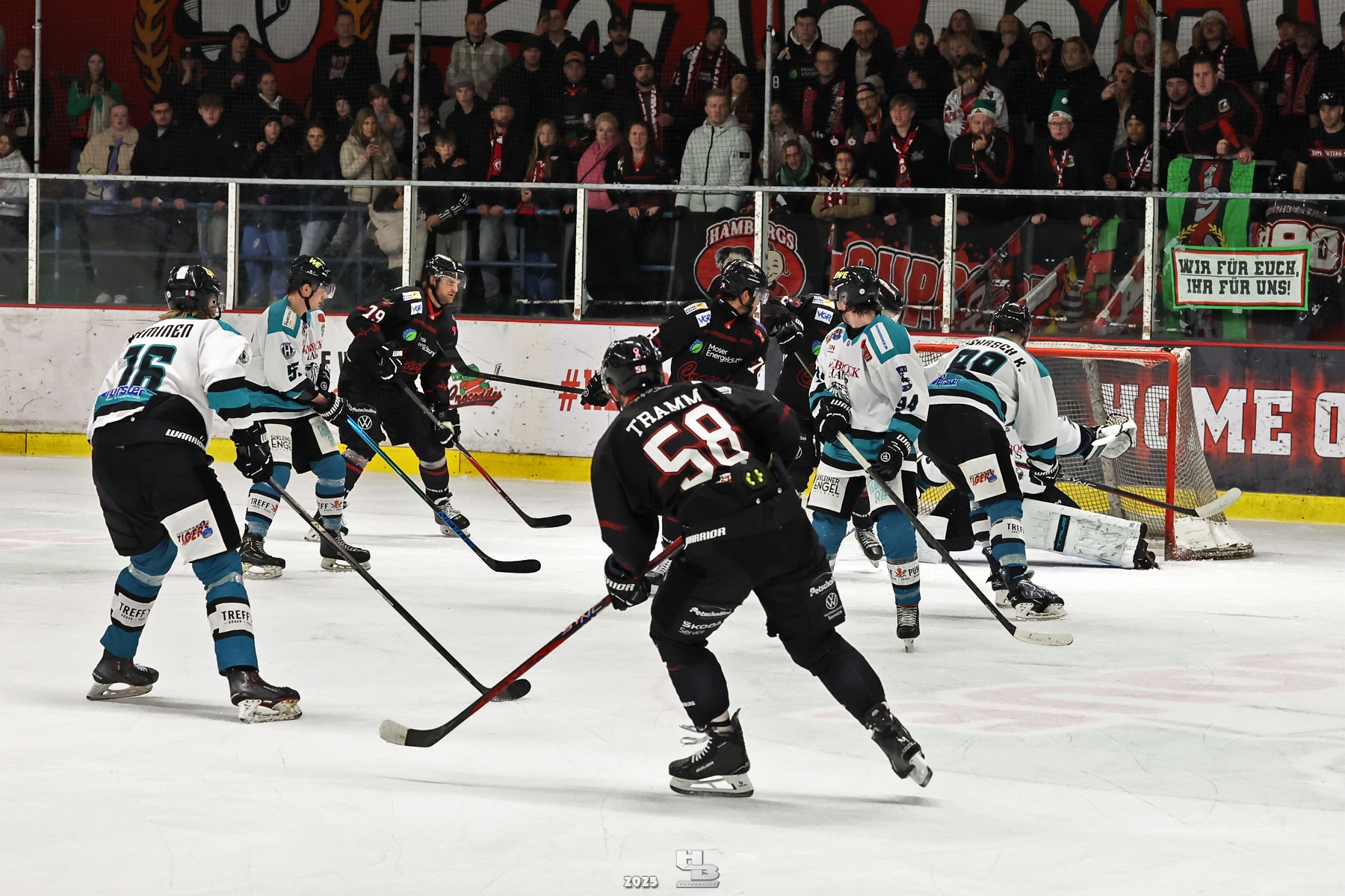 Im Schlussdrittel blieb das Spiel weiter temporeich. Die Crocodiles nutzten ihre Chancen konsequent: Ivan Savchenko erhöhte auf 3:1 und sorgte für etwas Ruhe. In der Schlussphase setzte der HSV alles auf eine Karte, nahm den Torhüter vom Eis – doch erneut war es Filip Kriz, der den Puck ins leere Tor beförderte und mit seinem zweiten Treffer des Abends den 4:1-Endstand besiegelte.
