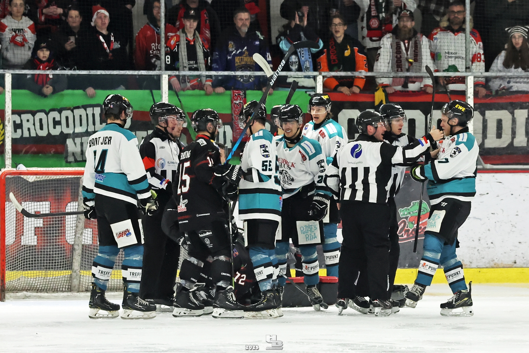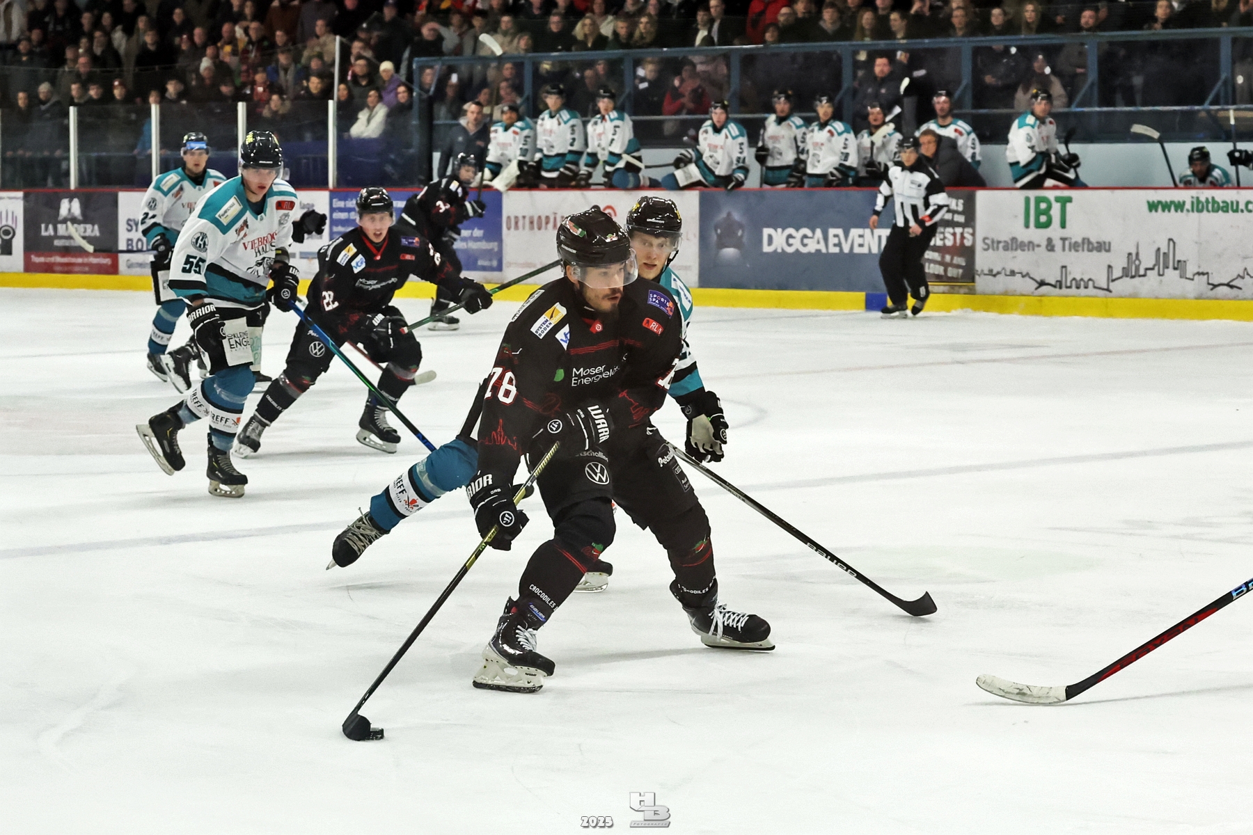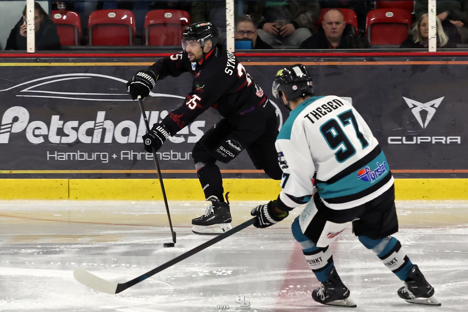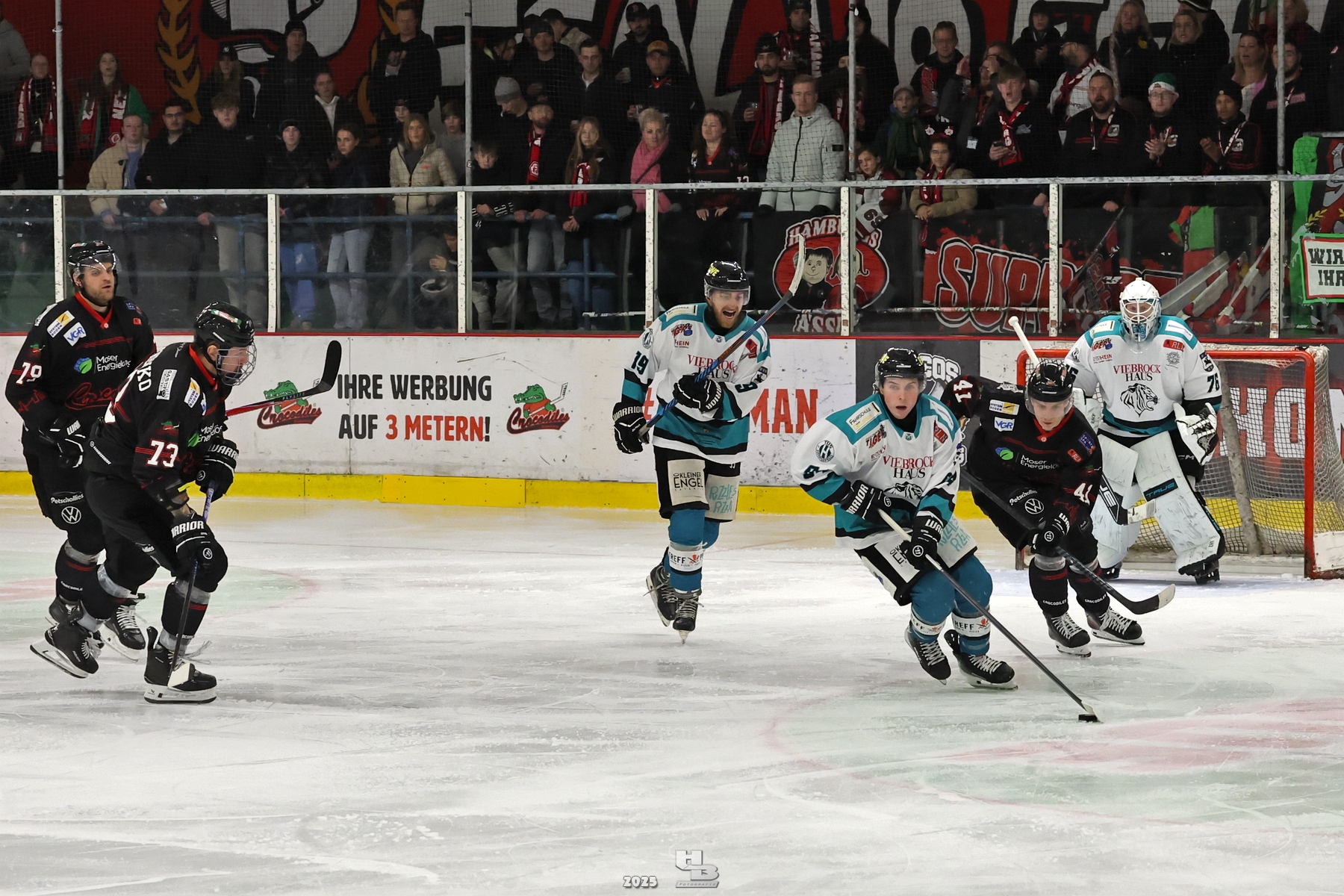 Im Schlussdrittel blieb das Spiel weiter temporeich. Die Crocodiles nutzten ihre Chancen konsequent: Ivan Savchenko erhöhte auf 3:1 und sorgte für etwas Ruhe. In der Schlussphase setzte der HSV alles auf eine Karte, nahm den Torhüter vom Eis – doch erneut war es Filip Kriz, der den Puck ins leere Tor beförderte und mit seinem zweiten Treffer des Abends den 4:1-Endstand besiegelte.