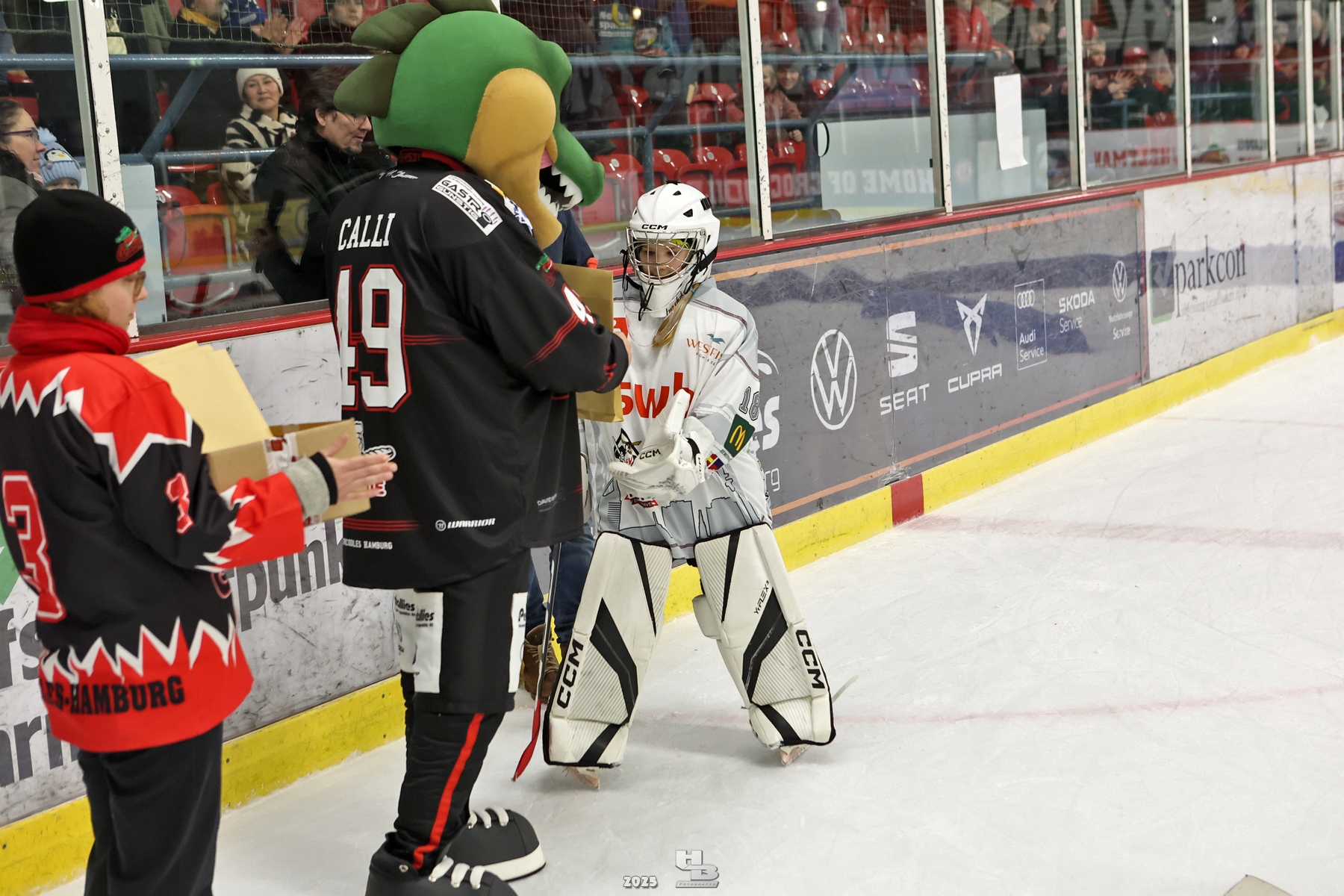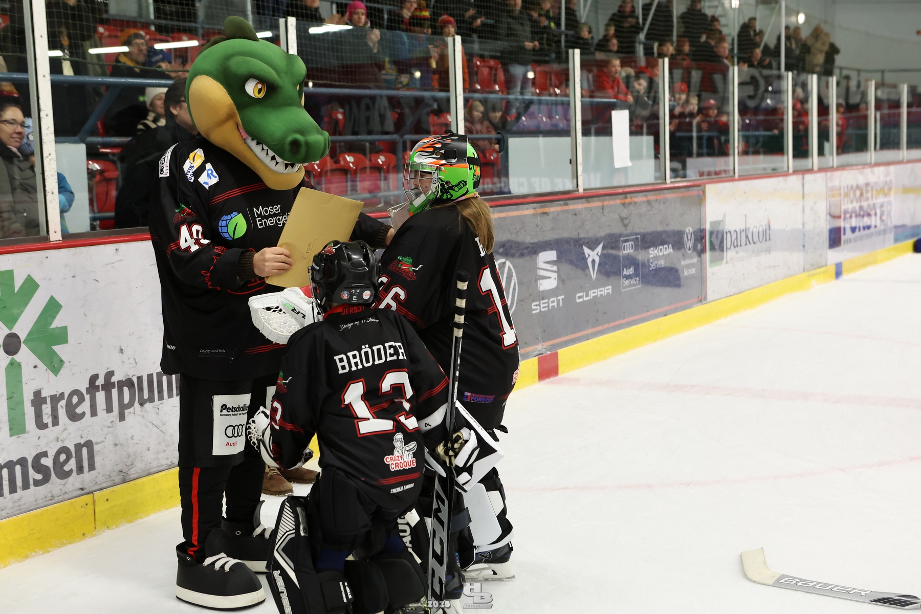 Im zweiten Drittel kam der HSV zunächst besser ins Spiel, doch die Hausherren verteidigten konzentriert und fanden bald wieder zu ihrem offensiven Rhythmus. In der 24. Spielminute brachte Filip Kriz die Crocodiles mit seinem Treffer nach Vorarbeit von Vitalijs Pavlovs und Ivan Savchenko mit 2:1 in Führung. Mit diesem Spielstand ging es auch in die zweite Drittelpause – und die hatte ein besonderes Highlight zu bieten: Nicht der langjährige Eismeister Jürgen, sondern Deutschlands jüngste Eismeisterin Stella (21 Jahre) übernahm die Aufbereitung der Eisfläche und erhielt dafür Applaus von den Rängen.