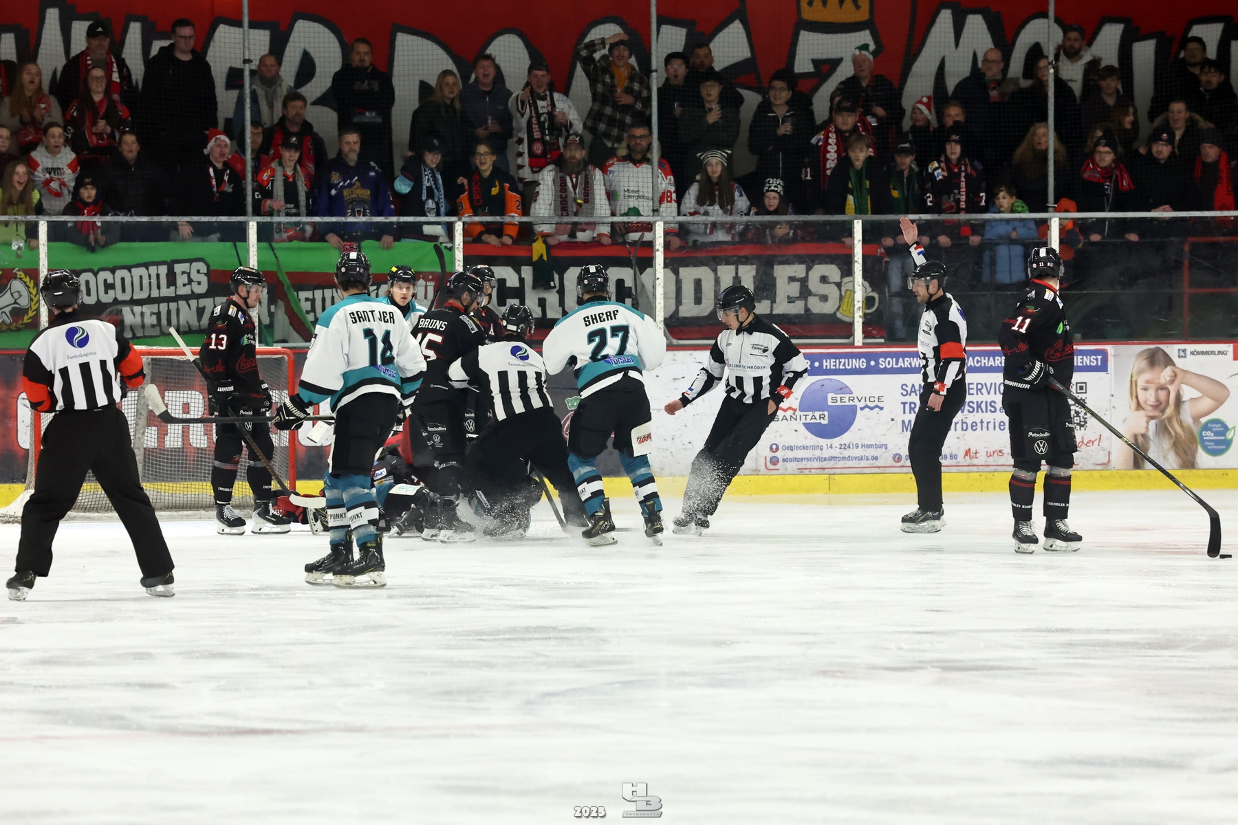 In den Schlusssekunden nahm Harsefeld seinen Torhüter zugunsten eines sechsten Feldspielers vom Eis, setzte sich im Hamburger Drittel fest – doch der Ausgleich blieb aus. Die Crocodiles verteidigten den knappen Vorsprung über die Zeit.