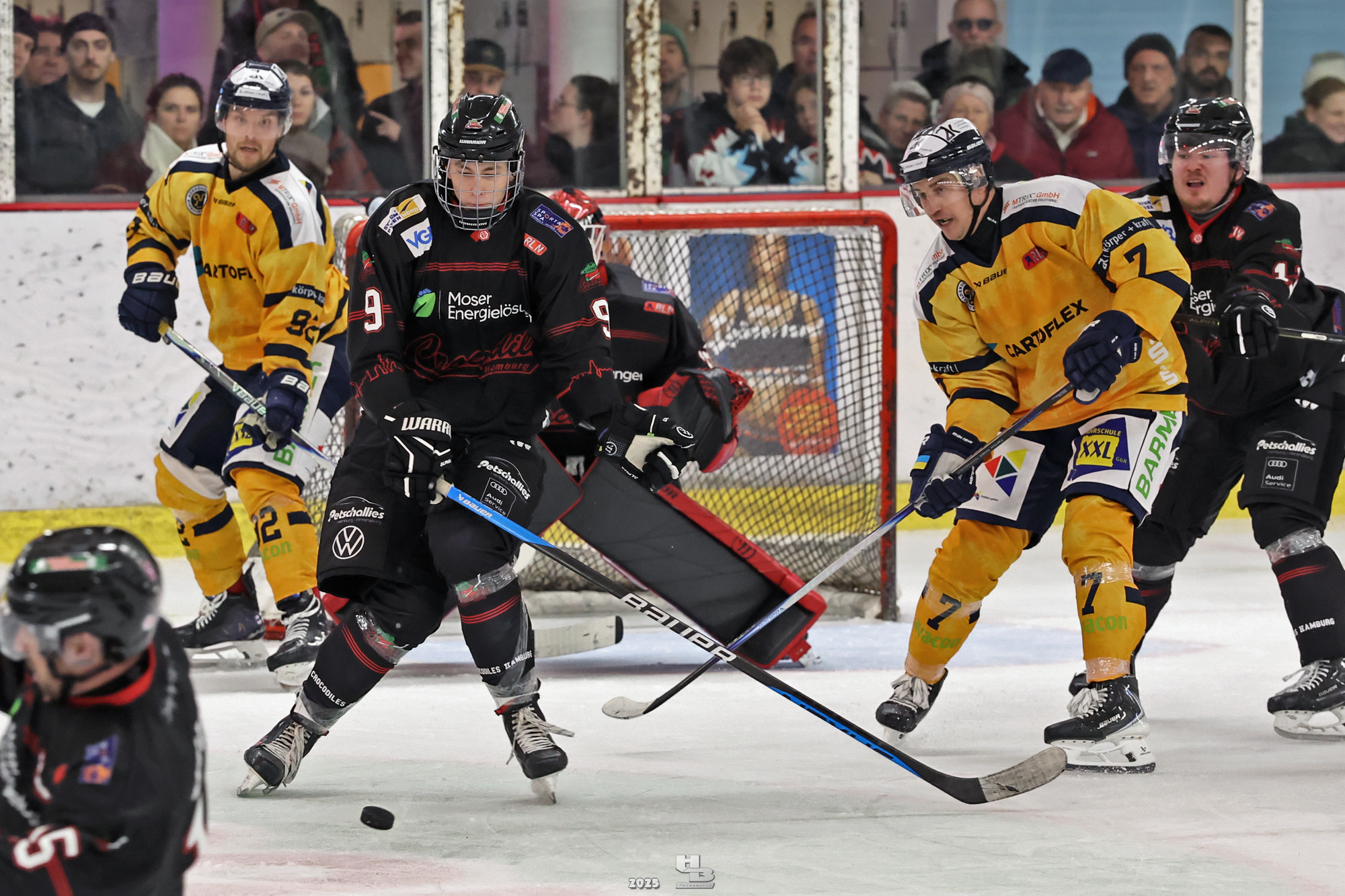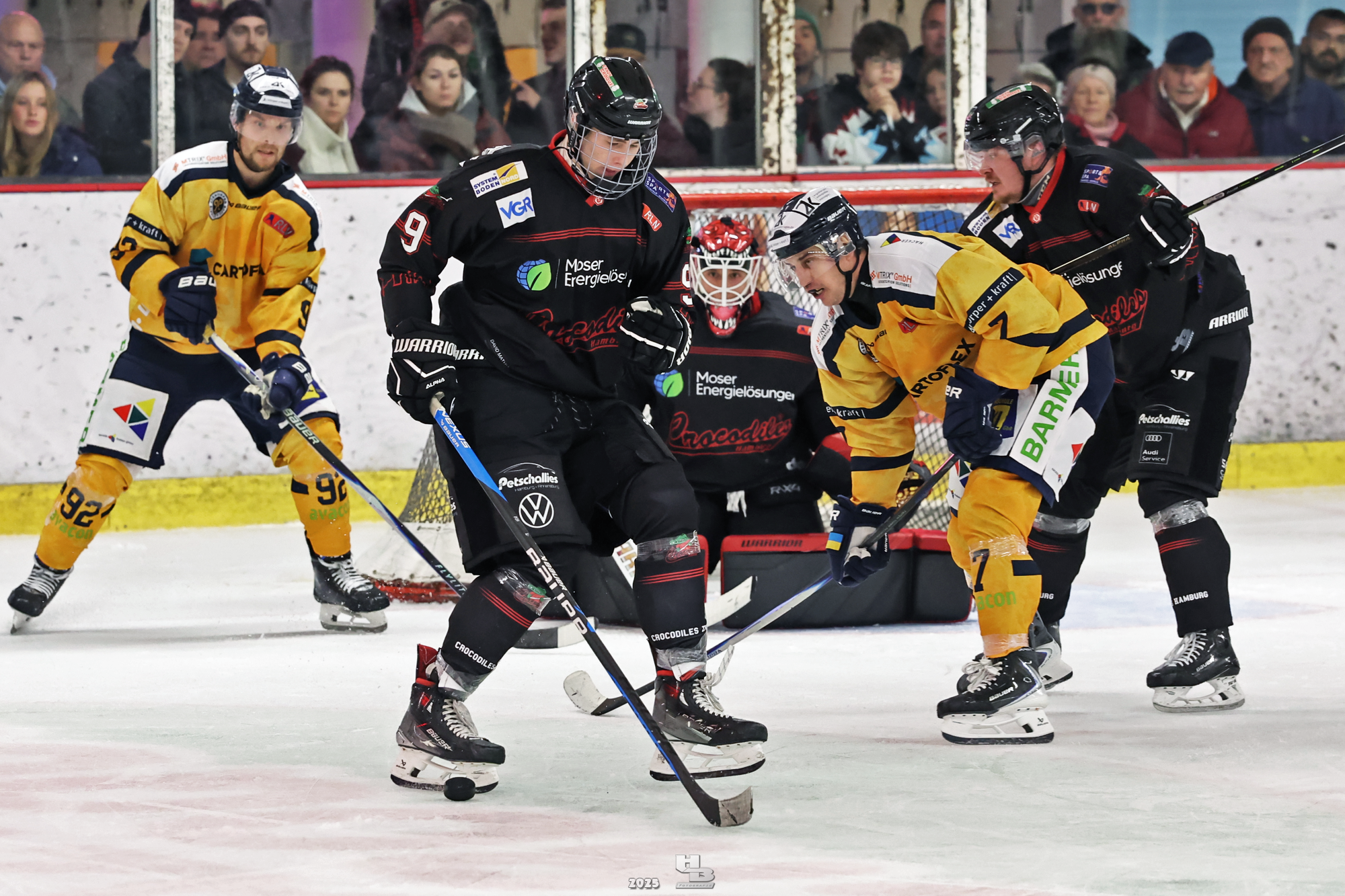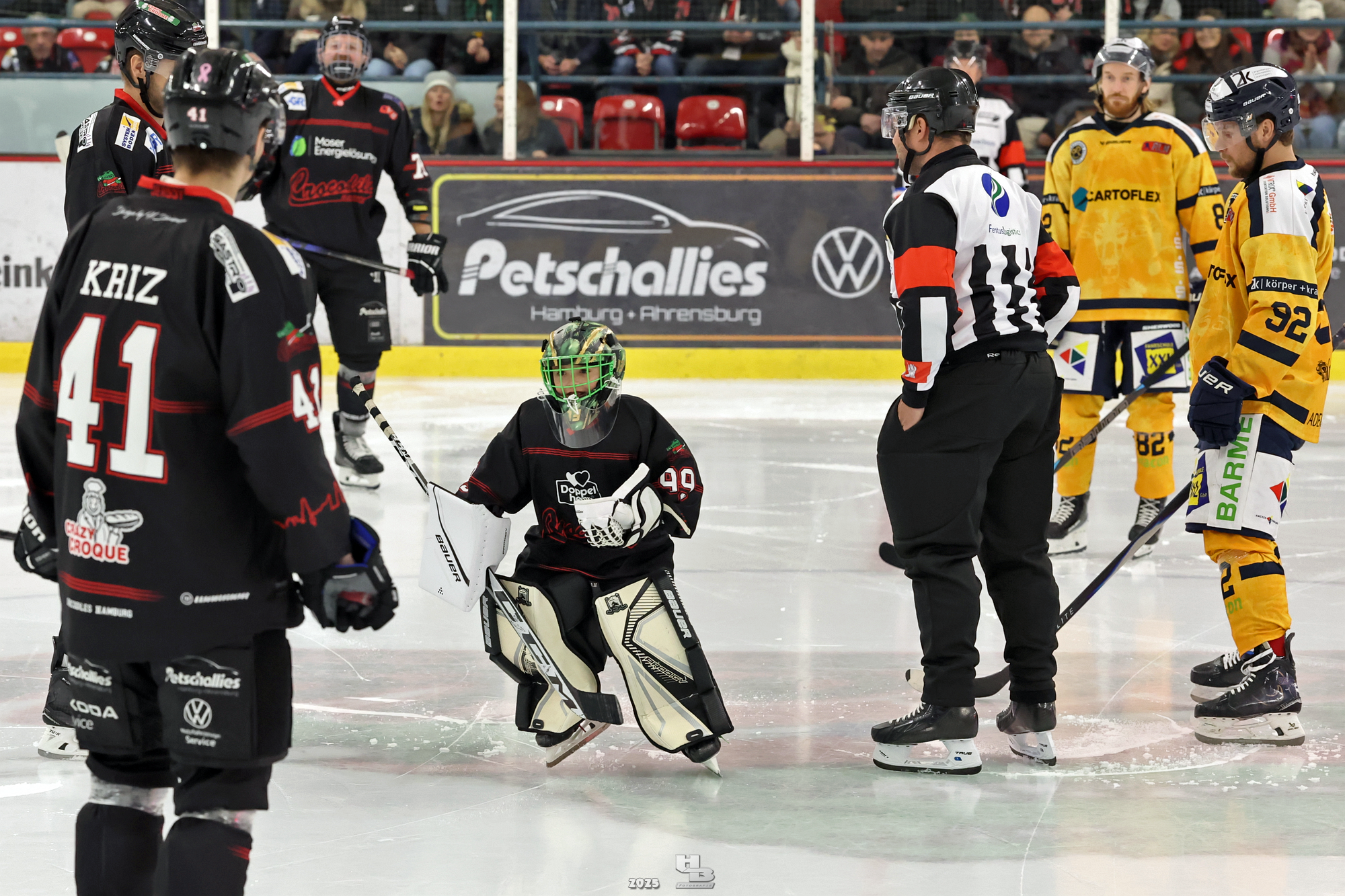 Die Crocodiles machten früh Druck auf das Gehäuse der Adendorfer. Man merkte, dass sie nach dem Sieg gegen die Falken weiter Vollgas geben wollten. So kam es, dass Leo Prüßner in der 4. Minute auf Traumvorlage von Markus Lepistö und Tobias Bruns das 1:0 erzielte. Die Crocodiles erhöhten weiter den Druck. In der 17. Minute musste Domantas Cypas für zwei Minuten auf die Strafbank. Das folgende Powerplay blieb ohne Treffer, sodass es mit der knappen Führung in die erste Pause ging.