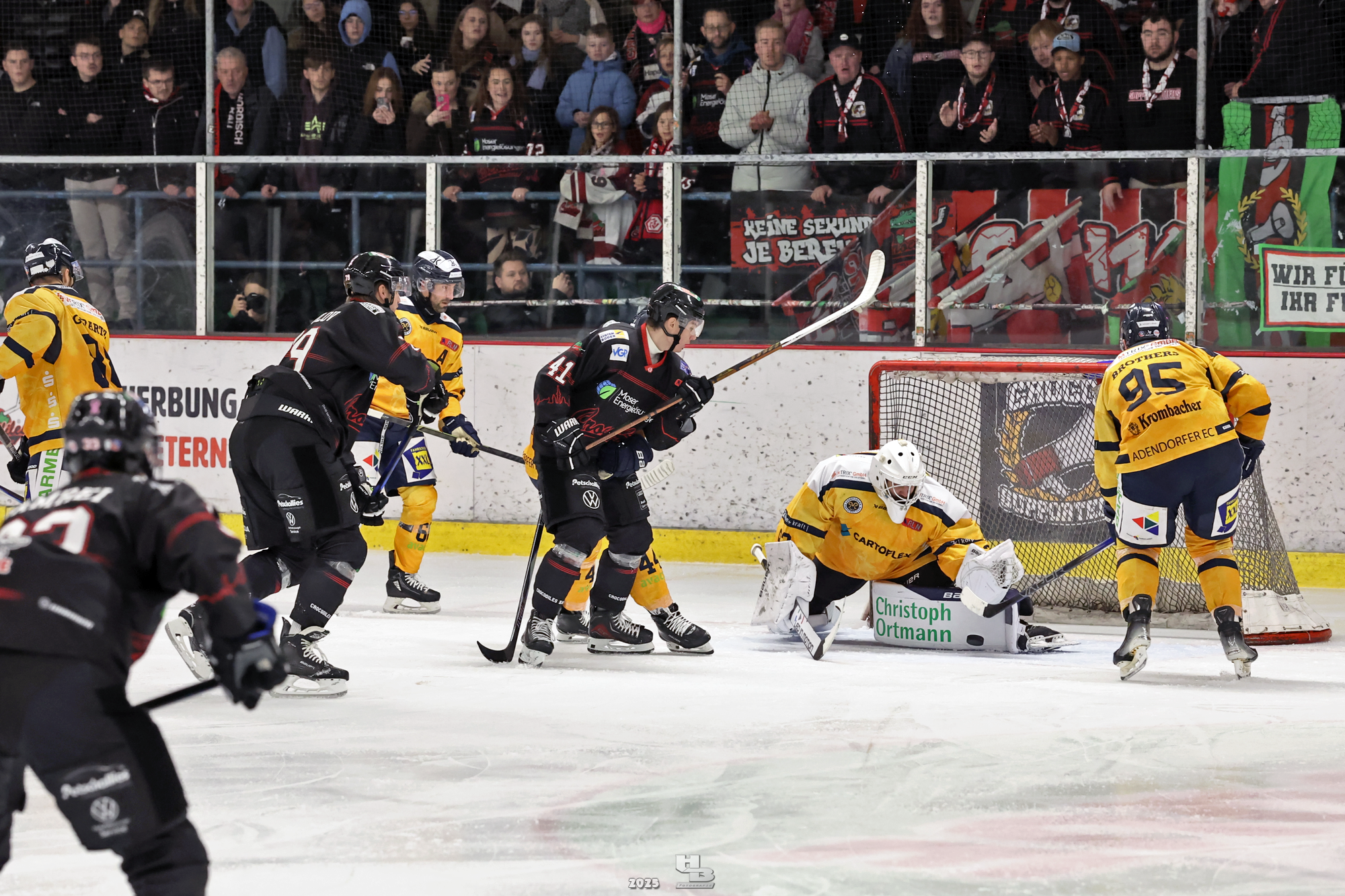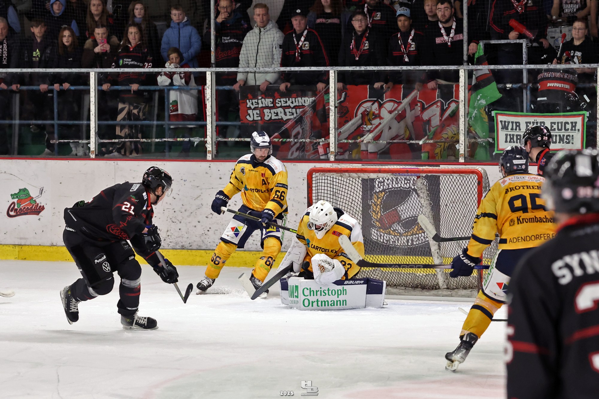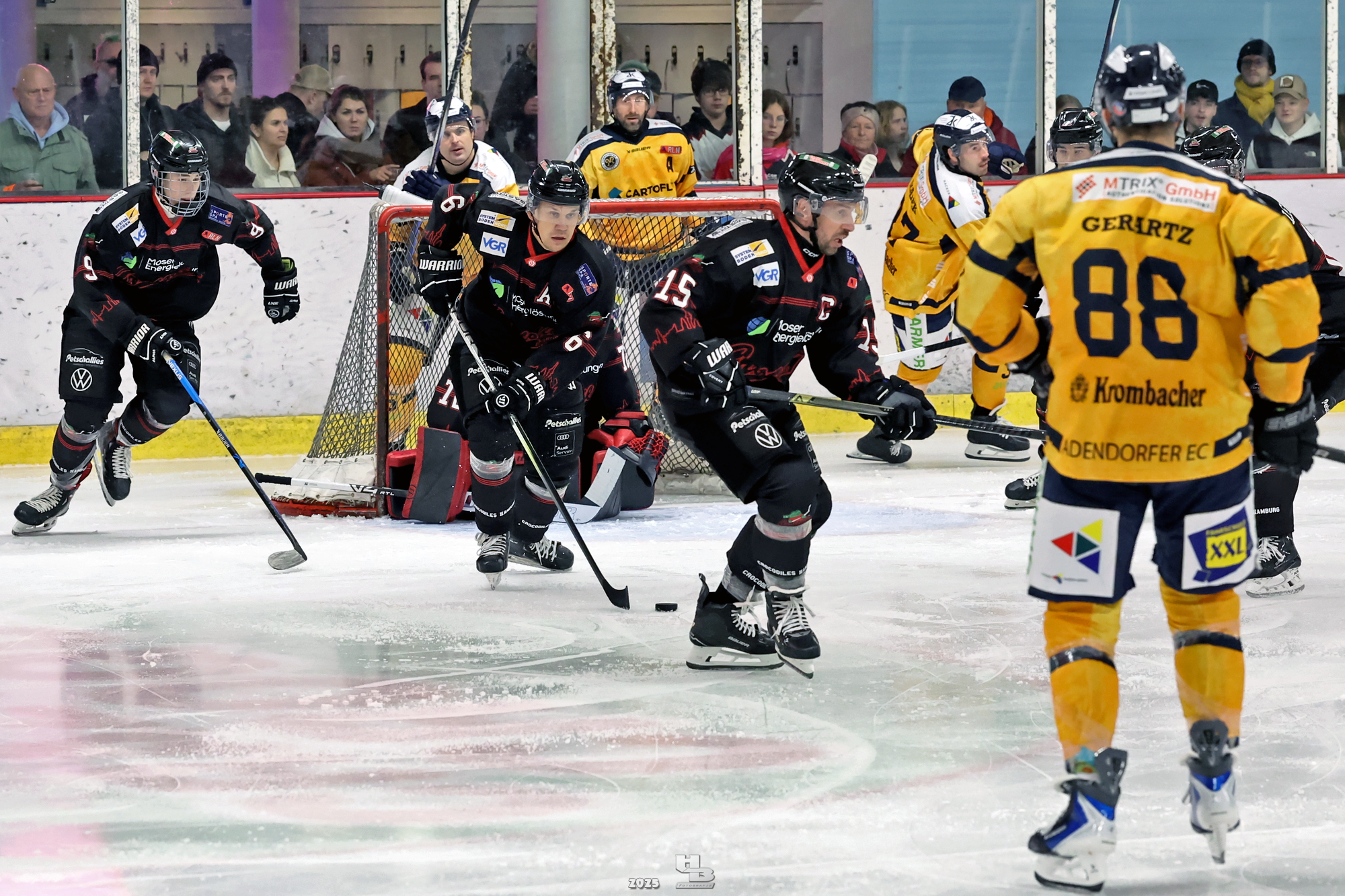 Nach der Pause hielten die Crocodiles das Tempo hoch, sodass Lasse Spreckelsen in der 24. Minute auf Vorlage von Maksym Andriienko und Oskar Siradze zum 2:0 erhöhen konnte. Dann ließen die Crocodiles das Tempo nach, sodass die Adendorfer einen guten Konter starten und durch Andre Gerartz auf 2:1 verkürzen konnten. Von da an kamen die Adendorfer nach und nach dem Tor immer näher. Die Crocodiles hatten noch drei Mal die Chance, im Powerplay ein Tor zu erzielen, doch jedes Mal scheiterten sie am starken David Kovacs. Mit der knappen 2:1-Führung ging es in die zweite Pause des Abends.
