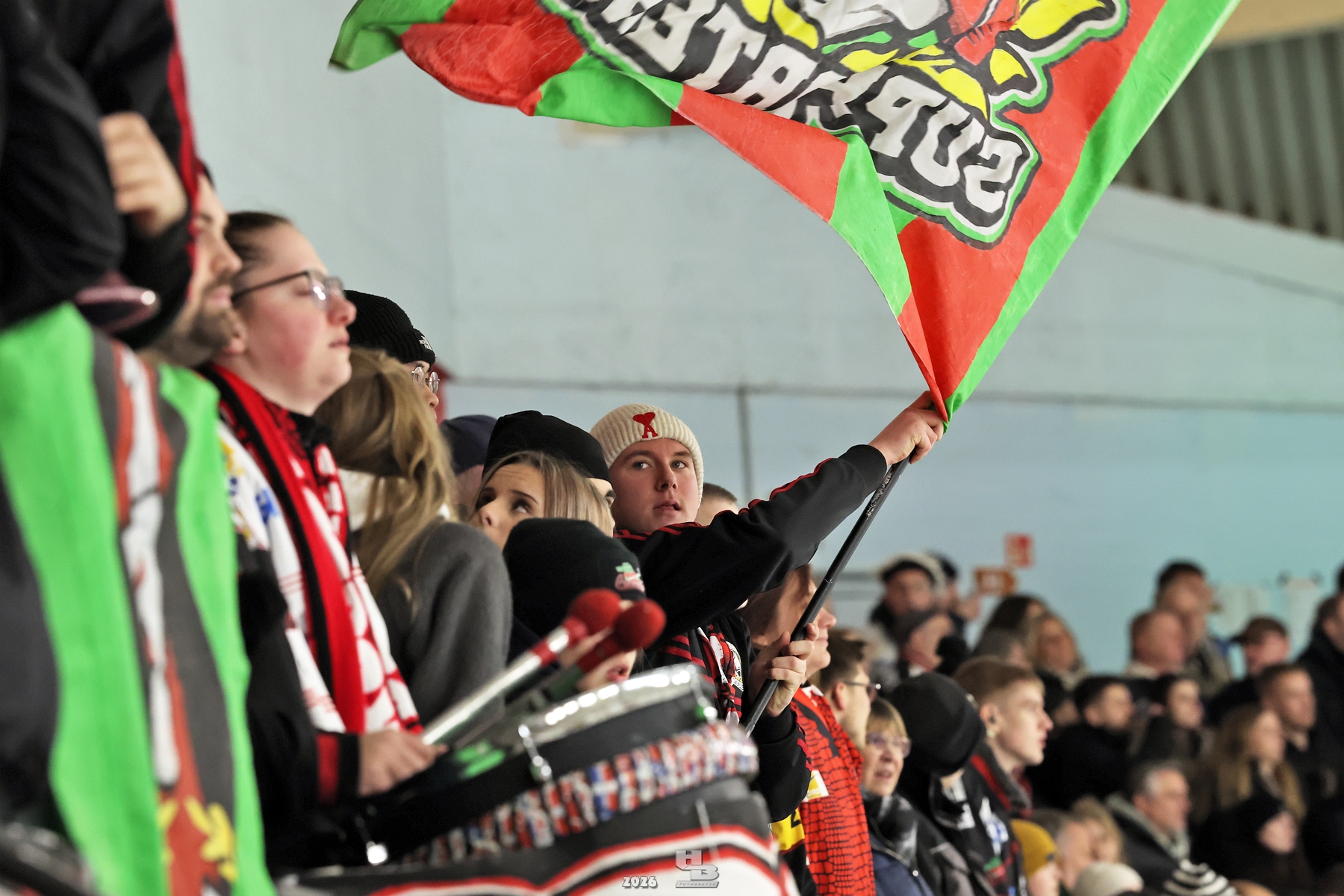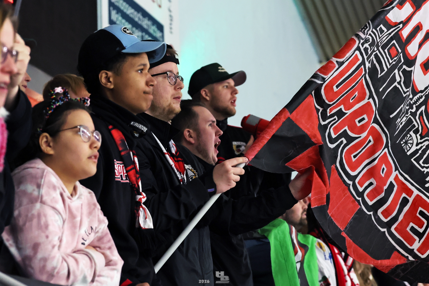 Am 20.02.2026 fand vor 1402 Zuschauern das erste Play-off-Spiel der Saison 2025/2026 statt. Die Fans waren voller Vorfreude auf die heiße Phase. Die Stimmung in der Halle war erneut auf dem Höhepunkt. Bereits vor Spielbeginn standen alle in der Halle und motivierte das Team. Im ersten Drittel lieferten sich beide Teams ein starkes Hin und Her. Man merkte, dass beide Teams heiß darauf waren, das erste Tor zu erzielen. Leider ging das erste Drittel 0:0 aus, und die Mannschaften verabschiedeten sich in die Pause.