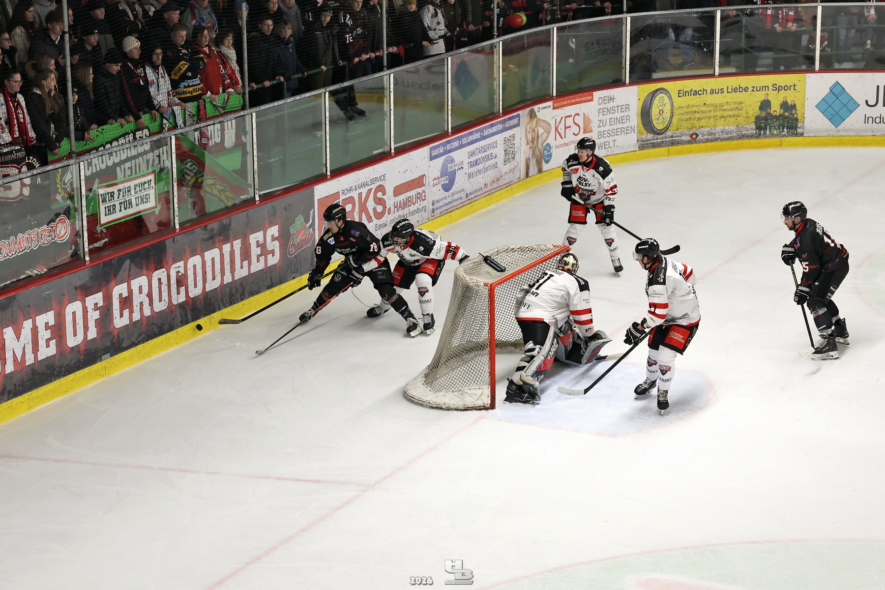 Vor ausverkauftem Haus erwarteten die Crocodiles Hamburg im letzten Hauptrundenheimspiel der Saison die Harzer Falken zum Duell. Nach dem Sieg am vorherigen Freitag in Salzgitter waren die Spieler hochmotiviert und wollten vor vollem Haus noch einmal alles geben. Doch wie auch in den Spielen zuvor gerieten die Crocodiles schnell in Rückstand. Der neue Falke Brozek erzielte in der 8. Minute das 1:0.