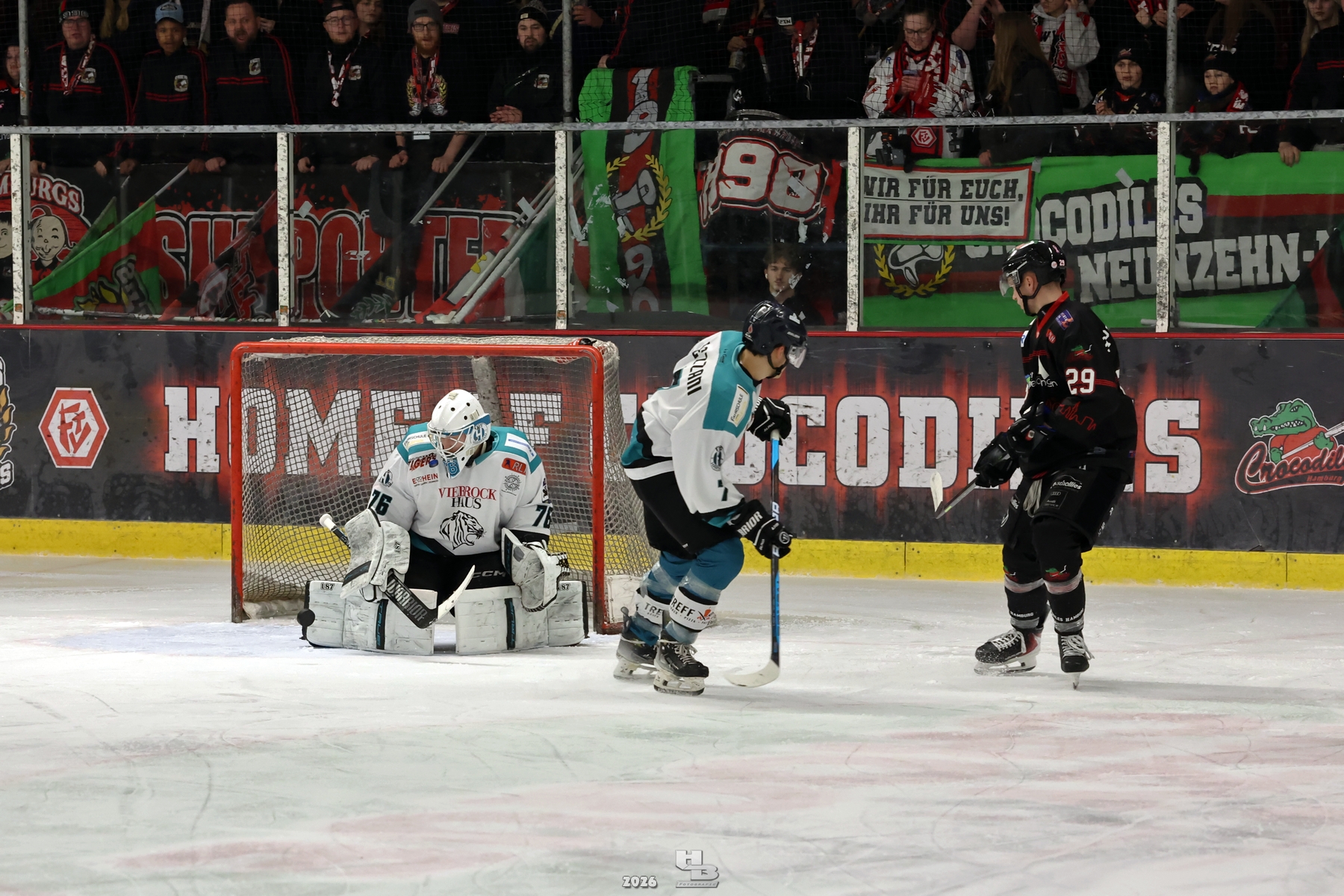 Eishockey Herren Regionalliga Playoff Viertelfinale Spiel 1: Crocodiles Hamburg vs. Harsefeld Tigers 1:3 am 20.02.2026